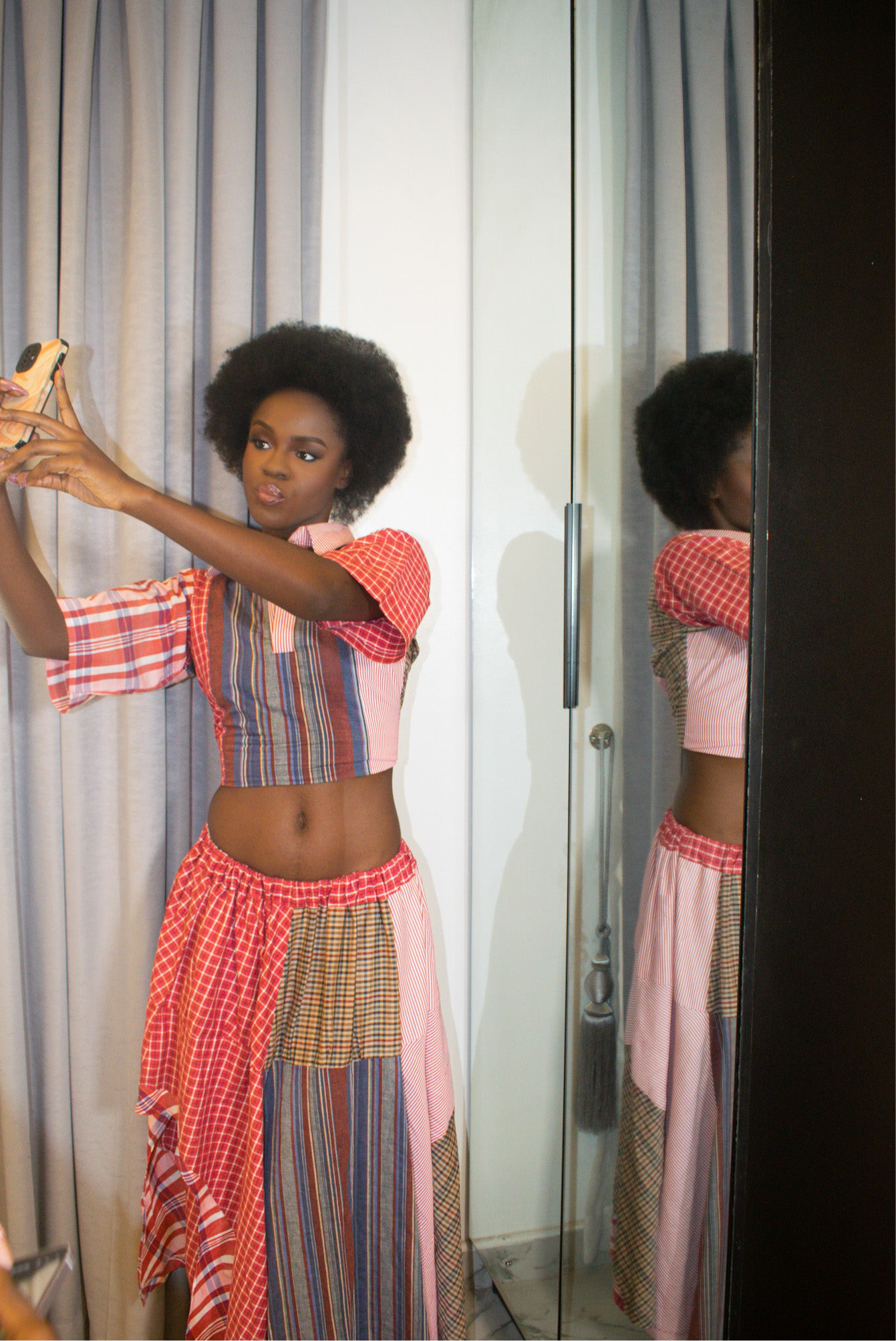 The Kauna Skirt Set is cut from mixed cotton patchwork, pieced together in bold stripes that echo African craftsmanship while feeling modern and versatile. An elastic waistband ensures ease and comfort, while the relaxed fit of the skirt gives it movement and everyday wearability.